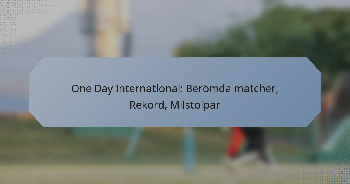 One Day Internationals (ODIs) är ett betydande format inom cricket, som visar anmärkningsvärda individuella och lagprestationer. Viktiga rekord i ODIs inkluderar högsta individuella poäng, flest runs som gjorts av spelare, bästa bowlingfigurer och anmärkningsvärda lagprestationer.